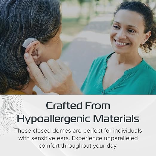 - Hypoallergenic Comfort: Crafted from hypoallergenic materials, these closed domes are perfect for individuals with sensitive ears. Experience unparalleled comfort throughout your day.